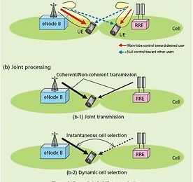 Advanced-scan 썸네일형 리스트형 C-RAN C-RAN은 주로 세부분으로 구성되는데 Remote Radio Head (RRH), Digital Unit (DU나 DU cloud), RRH와 DU간을 연결하는 전송 네트워크로 구성된다. RRH는 RF 전송과 필터링, A/D, D/A, 전송 네트워크 인터페이스등 으로 구성되며, DU cloud는 여러개의 DU들의 연결로 이루어 진다. 전송 네트워크는 CPRI(Common Public Radio Interface) 같은 광 섬유나, Mirowave로 구성된다. 이런 C-RAN은 크게 두 가지 솔루션이 있다. 하나는 중앙 집중식이며, L1과 L2, L3 BTS기능은 DU에 위치한다. 또 다른 하나는 분할 집중식으로 다른 모든 상위 계층 기능은 DU에 여전히 남겨 지고 RRH가 분리된다. 방법 2에서 DU는.. 더보기 LTE CCC, Advanced SCAN 2011년 2월 MWC에서 KT는 삼성과 인텔과 같이 C-RAN형태의 기지국인 LTE CCC를 공개하였었다. 그후 바로 SKT는 삼성과 Advanced Scan이라는 솔루션을 공개하였다. KT와 SKT가 공개한 C-RAN은 기지국에서 Joint processing(JP). Coordination Scheduling(CS)/Coordination Beamforming(CB)를 지원하는것이 공통점이다. 크게 이 두가지 JP, CS/CB를 묶어서 CoMP(Coordination Multi Point)로 서비스를 한다. 이 CoMP는 LTE-Advanced에서 지원하는 기술을 가져와서 추가한 것이기 때문에 전체적인 CoMP의 기능이 아닌 부분적인 기능으로만 작동한다. 차이점은 KT의 경우 14개의 RRH를 가진.. 더보기 이동통신 3사 기지국 분석 현재 사용하는 LTE기지국들은 SKT는 Advanced Scan, KT는 LTE CCC(WARP), LG유플러스는 Bank기지국 이라고 한다. Advanced Scan과 LTE CCC의 경우 LTE-Advanced에서 지원하는 CS/CB와 JP를 지원 CS/CB는 Coordinated Scheduling /Coordinated Beamforming 의약자로써 조직화된 스케줄링과 조직화된 빔포밍이다.(스케줄링은 말 그대로 일정 계획으로 단말기에게 주파수 같은 자원을 주는 것을 관리하며, 빔포밍은 안테나의 빔을 좁혀 특정 단말기에 맞게 쏴주는 것으로 보면 된다.) 또한 JP는 Joint Procesing의 약자로 두개의 셀로 부터 동시의 데이터를 받기 때문에 셀 반경 끝부분에서라도 품질의 열화가 적어지도록 .. 더보기 이전 1 다음